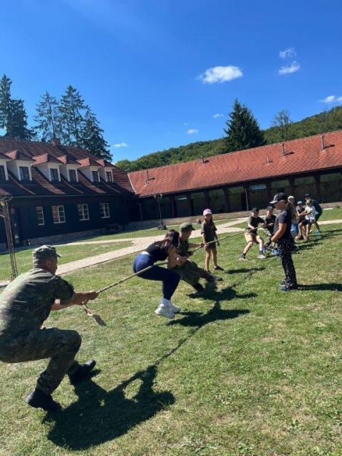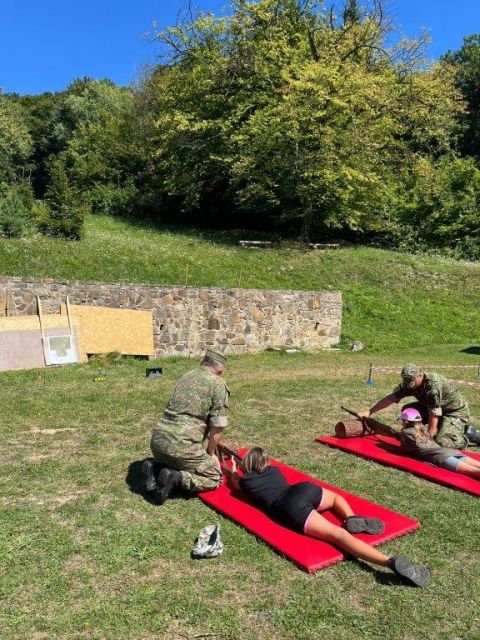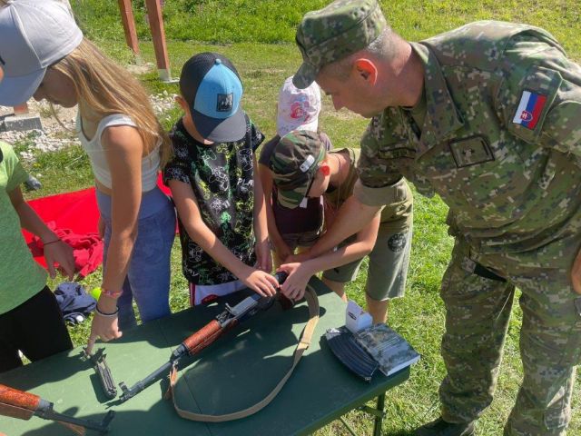 V pondelok bol pre deti pripravený program s pracoviskami zo zdravotníckej prípravy, kde sa deti učili poskytovať prvú pomoc, zastaviť krvácanie a zhotoviť nosidlá a bezpečne transportovať raneného na miesto vyzdvihnutia. V utorok sa celý deň niesol v duchu streleckej prípravy, a tak sme ho nazvali „Strelec“. Na pripravených pracoviskách sa deti učili, ako správne zaujať postoj, mieriť, držať zbraň a bezpečne vystreliť. Bezpečná manipulácia bola prioritou. Deti si vyskúšali streľbu zo vzduchovej zbrane a vystrelením cvičných nábojov z útočnej pušky Sa vz.58 V. Dostali tiež možnosť zbraň rozobrať a poskladať. Poobede si zmerali sily a preverili svoju obratnosť na prekážkovej dráhe. Tým sa ale ani zďaleka aktivity tohoto dňa neskončili a pokračovali večernou vojenskou hrou spolu s animátormi.
