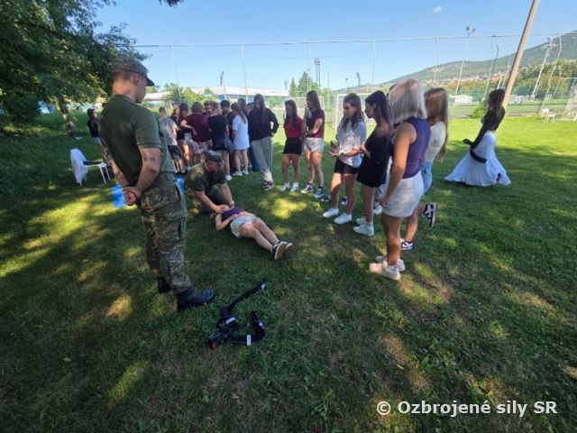 Ukážky vojakov 11. brigády Vzdušných Síl Nitra na zdravotníckej škole v Nitre V spolupráci so Strednou zdravotníckou školou v Nitre sa v doobedňajších hodinách dňa 4. augusta 2025 uskutočnil branno-športový deň, na ktorom mali študenti možnosť bližšie spoznať prácu profesionálnych vojakov. Cieľom aktivity bolo priblížiť mladým ľuďom špecifiká vojenskej služby, jej zameranie a náročnosť. Súčasťou programu boli dynamické ukážky služobnej kynológie. Psovodi demonštrovali zásahy služobných psov proti páchateľovi a prácu v rôznych modelových situáciách. Žiaci mali možnosť na vlastné oči vidieť koordináciu človeka a zvieraťa pri špeciálnom výcviku, ktorý je neoddeliteľnou súčasťou bezpečnostných zložiek. Na podujatí mohli študenti navštíviť celkovo dvanásť stanovíšť, na ktorých si mohli zlepšiť teoretické i praktické zručností vo viacerých oblastiach. Pre študentov boli pripravené aj dve súťažné stanovištia. Prvé zo stanovíšť bolo zamerané na prvú pomoc v poľných podmienkach, kde si študenti mohli preveriť svoje zdravotnícke zručnosti a naučiť sa, ako správne reagovať pri zraneniach v bojových podmienkach či krízových situáciách. Druhé stanovište sa venovalo výzbrojným a výstrojným súčiastkam, RCHBO a zbraňovým systémom. Žiaci tak získali prehľad o technickej výbave vojakov, spôsobe jej používania a dôležitosti ochrany v rizikovom prostredí. Podujatia sa aktívne zúčastnili žiaci 1. a 2. ročníka, ktorí sa zapájali do praktických ukážok, diskutovali s príslušníkmi 11. brigády Vzdušných síl Nitra a kládli otázky týkajúce sa ich profesionálnej služby. Aktivita priniesla študentom nielen zážitok, ale aj cenné vedomosti, ktoré môžu mladým ľuďom pomôcť pri rozhodovaní o budúcej kariére a zároveň prehĺbiť ich povedomie o význame ozbrojených síl v spoločnosti.